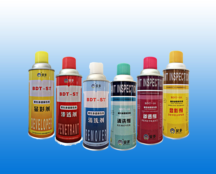 著色滲透探傷劑用于非鐵磁性材料表面缺陷檢測,產品顯像迅速,清晰,線條細,不暈染。廣泛應用于化工、造船、發(fā)電、航空、機械、汽車、冶金、石油、鐵路、受壓容器等部門的探傷檢測。